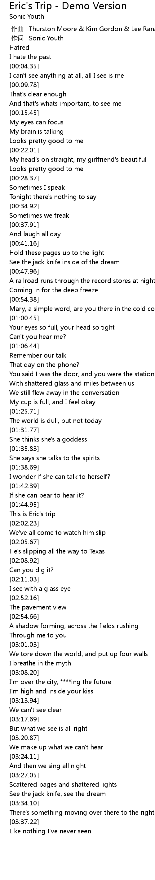 | [00:00.359] | 作词 : Sonic Youth |