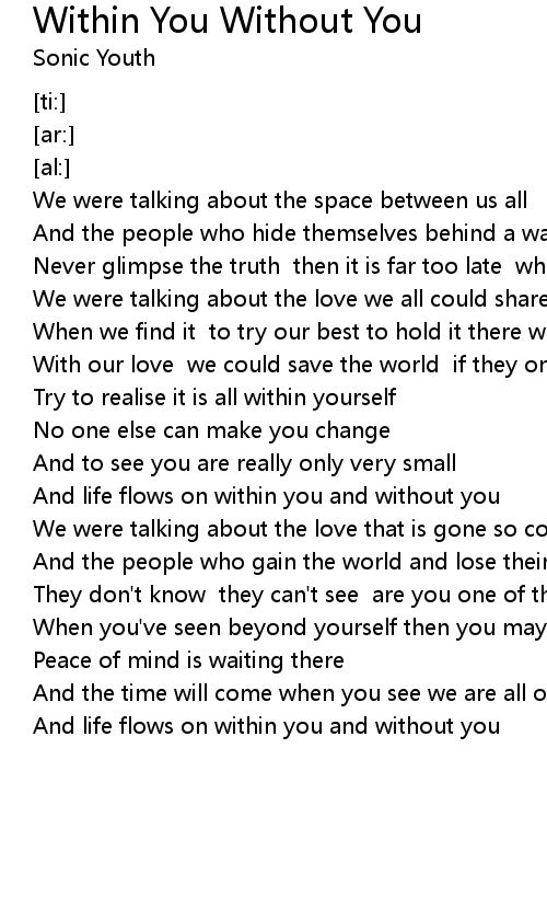 And life flows on within you and without you |
