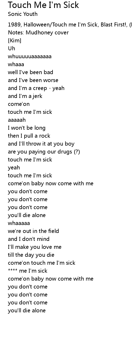 come'on touch me I'm sick |