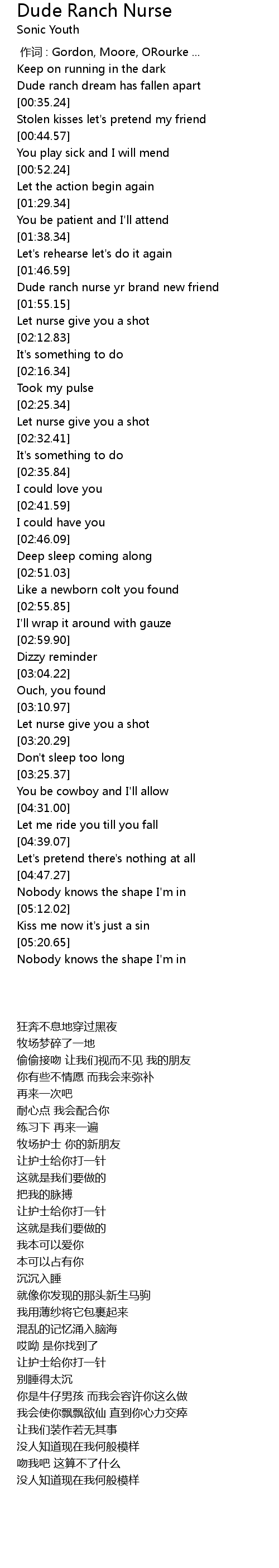 | [00:00.00] | zuò cí : Gordon, Moore, ORourke ... |