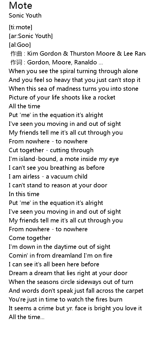 | [00:01.00] | 作词 : Gordon, Moore, Ranaldo ... |