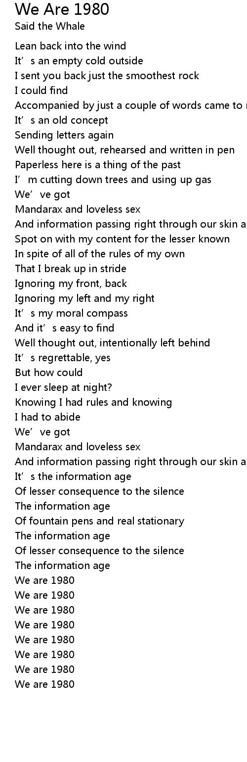 | Song | We Are 1980 |