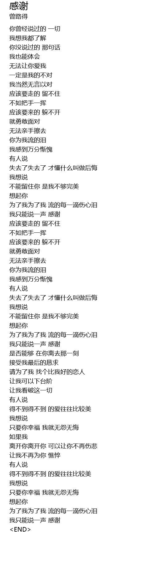 | [04:06.49] | 我只能说一声 感谢 |