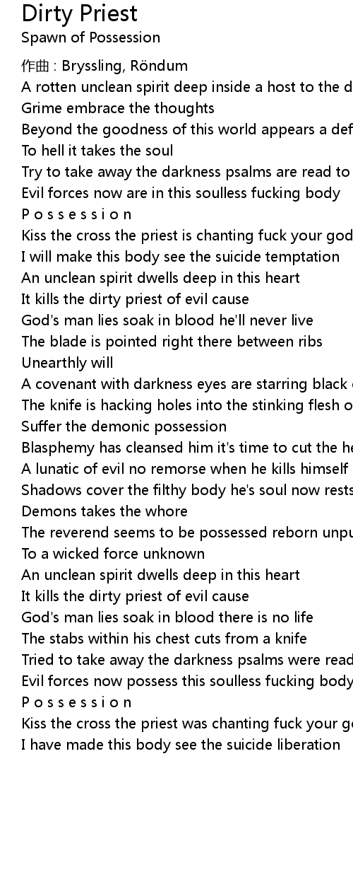 | Kiss the cross the priest is chanting fuck your god the demon whisper | |