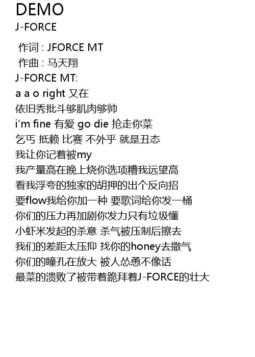 | [00:00.000] | 作词 : JFORCE MT |