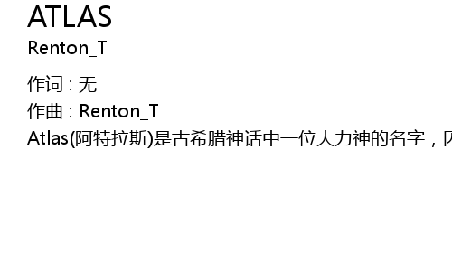 | Atlas(阿特拉斯)是古希腊神话中一位大力神的名字,因支持巨人族首领泰坦反对主神宙斯,而被宙斯降罪来用双臂支撑苍天。 |