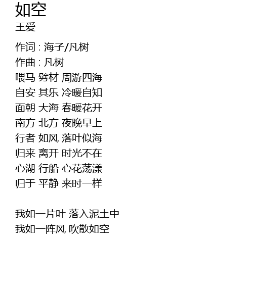 | wǒ rú yī zhèn fēng chuī sàn rú kōng |