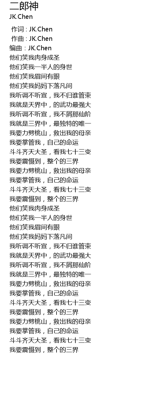 | [00:01.605] | 编曲:JK.Chen |