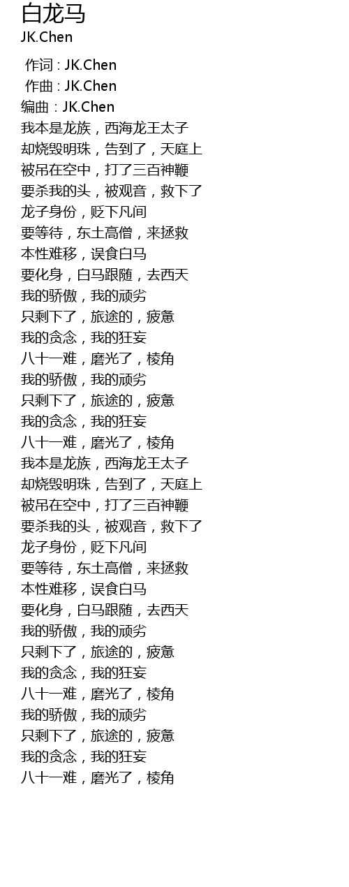 | [00:00.000] | 作词 : JK.Chen |