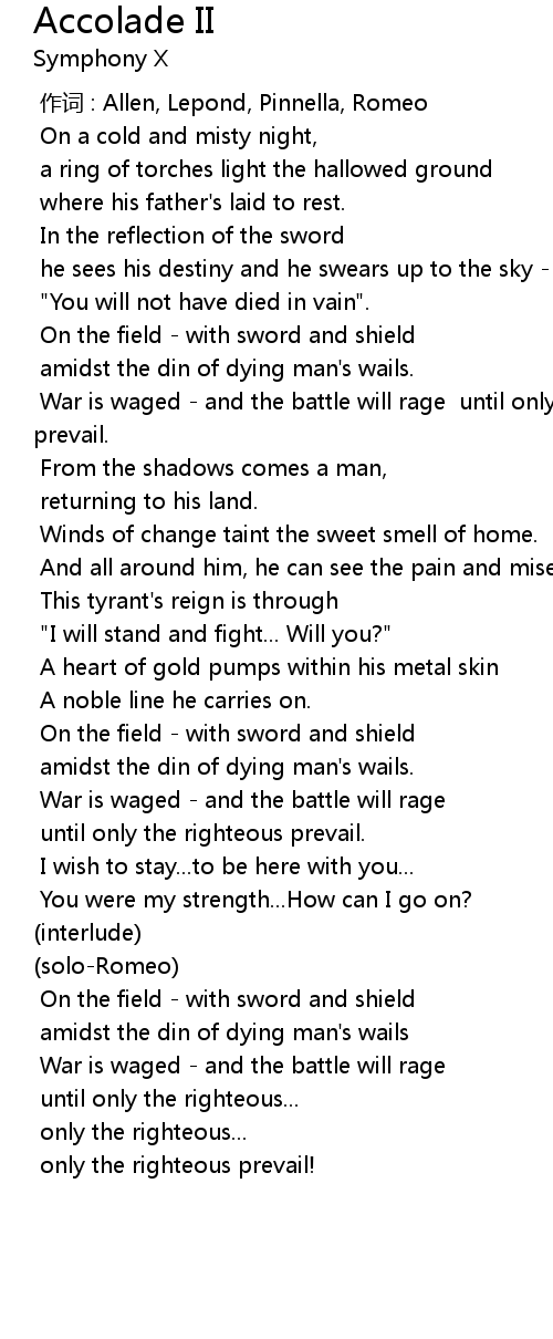 | [02:37.24] | War is waged - and the battle will rage until only the righteous prevail. |