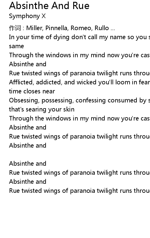 | Rue twisted wings of paranoia twilight runs through eyes of ignorance |