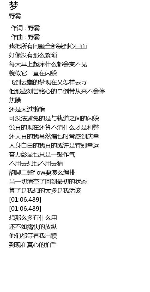 | [00:55.242] | 韵脚工整flow要怎么编排 |