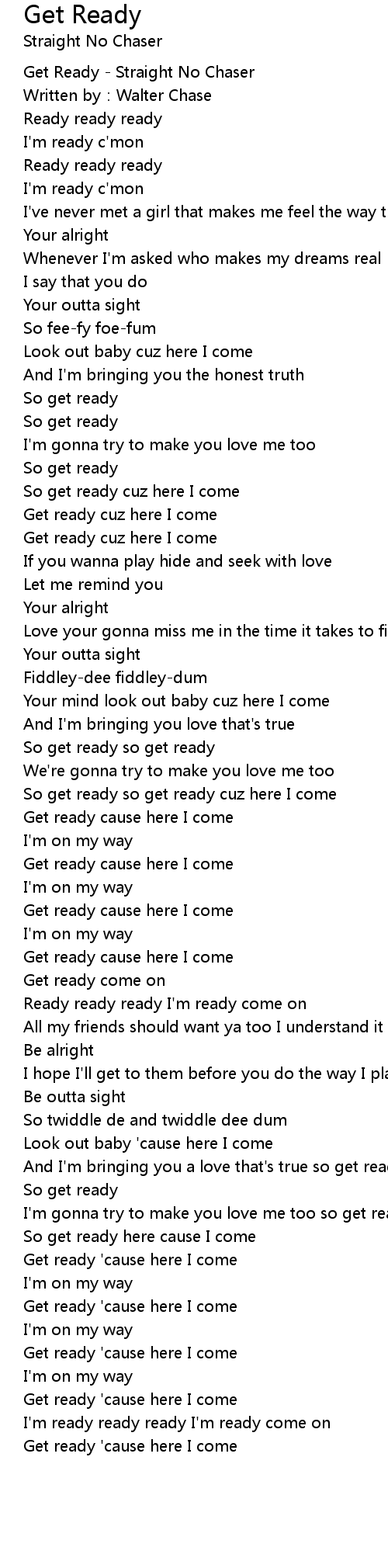| [00:00.100] | Get Ready - Straight No Chaser |