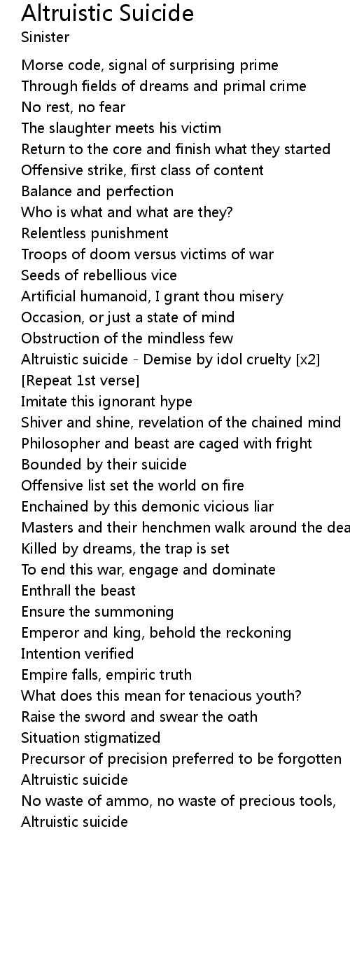 Altruistic suicide - Demise by idol cruelty [x2] |