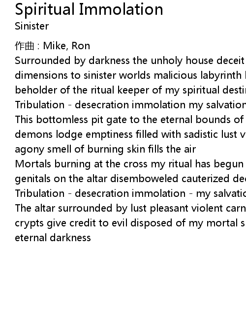 | Song | Spiritual Immolation |
