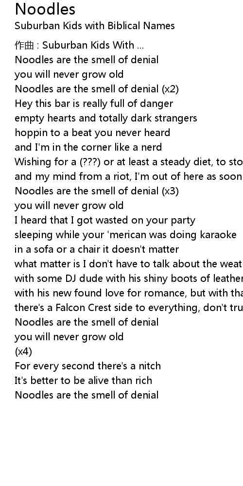 | Noodles are the smell of denial (x3) | |
