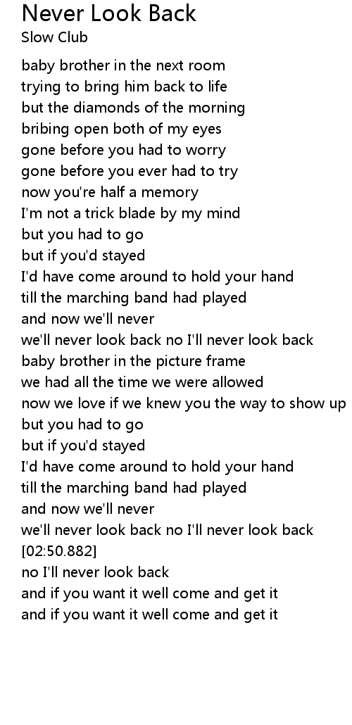 | [02:38.108] | we'll never look back no I'll never look back |