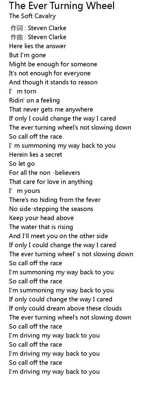 | [04:20.456] | The ever turning wheel's not slowing down |