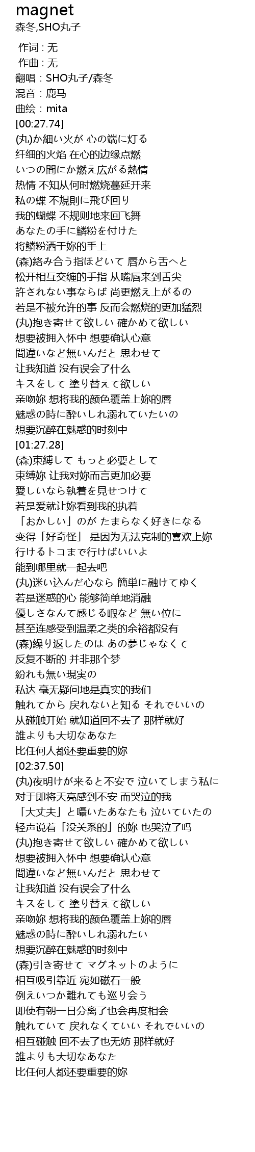 | [00:00.00] | 翻唱:SHO丸子/森冬 |