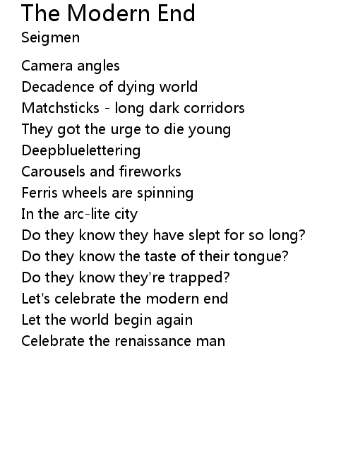| Let's celebrate the modern end | |