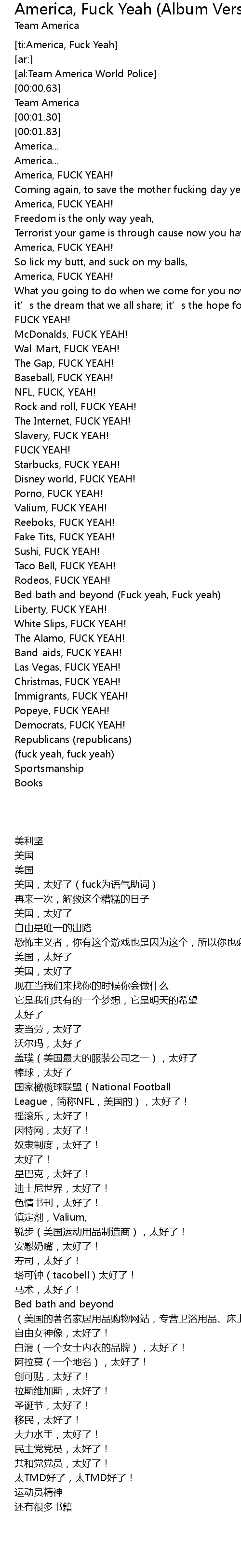| [ti:America, Fuck Yeah] | |