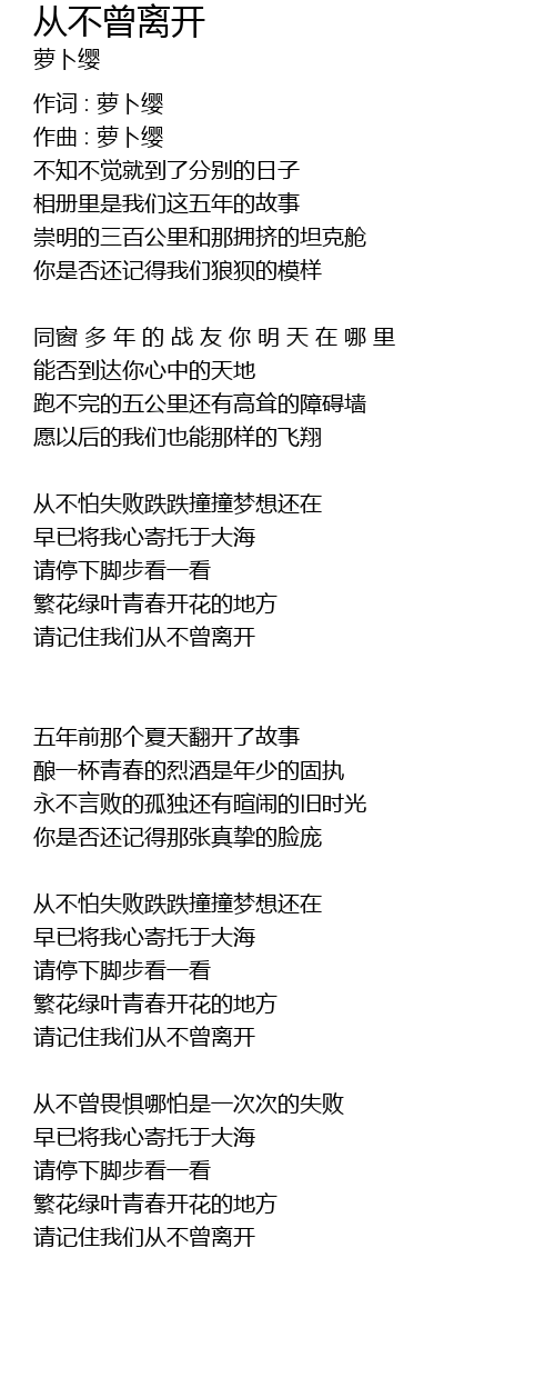 | qǐng jì zhù wǒ men cóng bù céng lí kāi | |