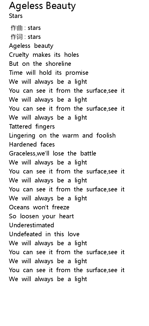 | Song | Ageless Beauty |