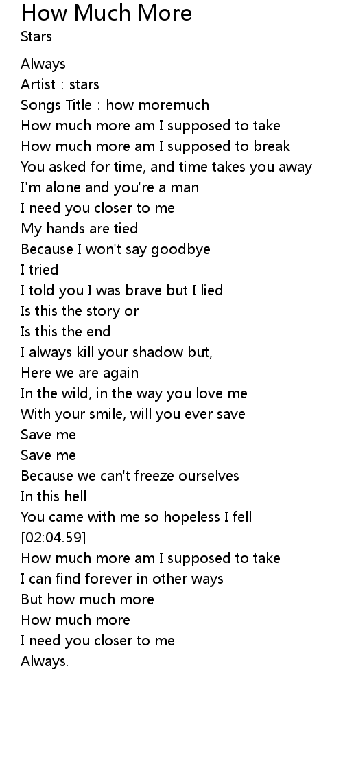 | [02:31.46] | How much more |