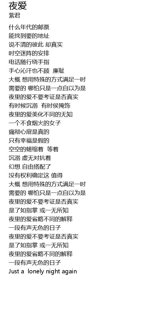 | [03:23.74] | 夜里的爱省略不同的解释 |