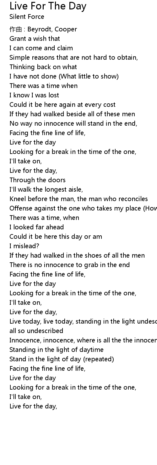 | Live for the day, | |