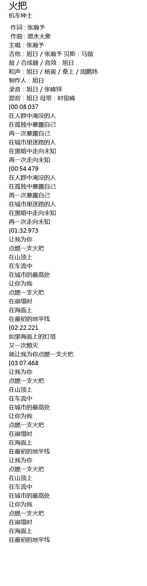 | [00:02.714] | 吉他:旭日 / 张瀚予 贝斯:马锴 |