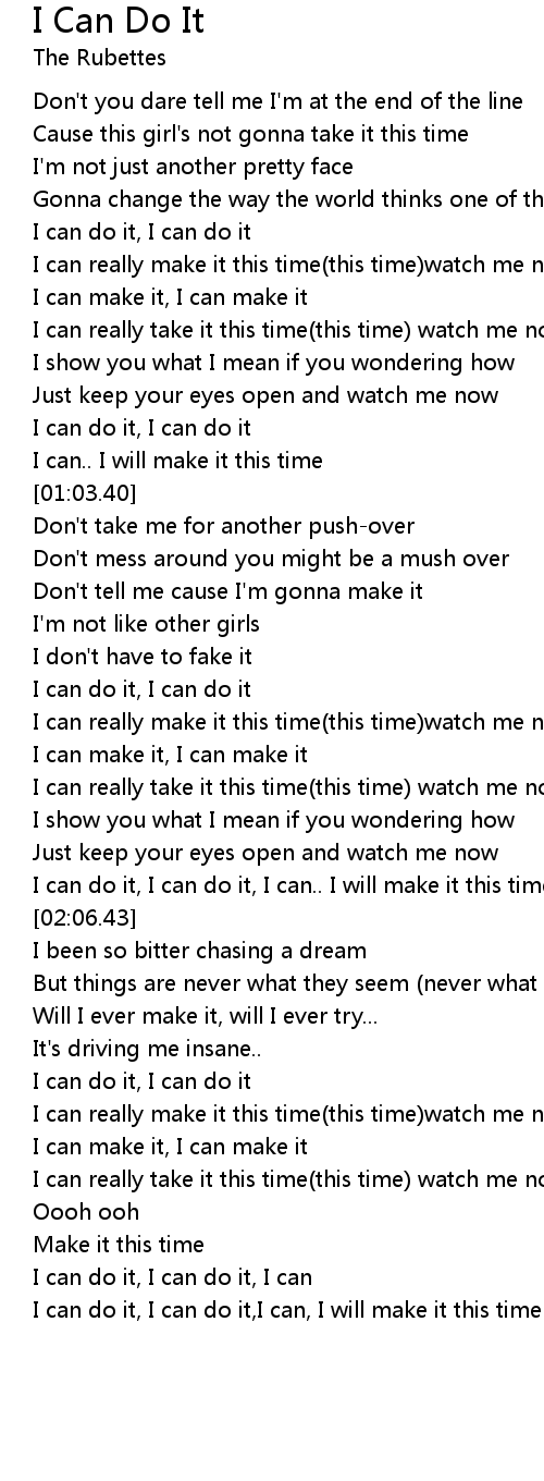 I can do it, I can do it,I can, I will make it this time |