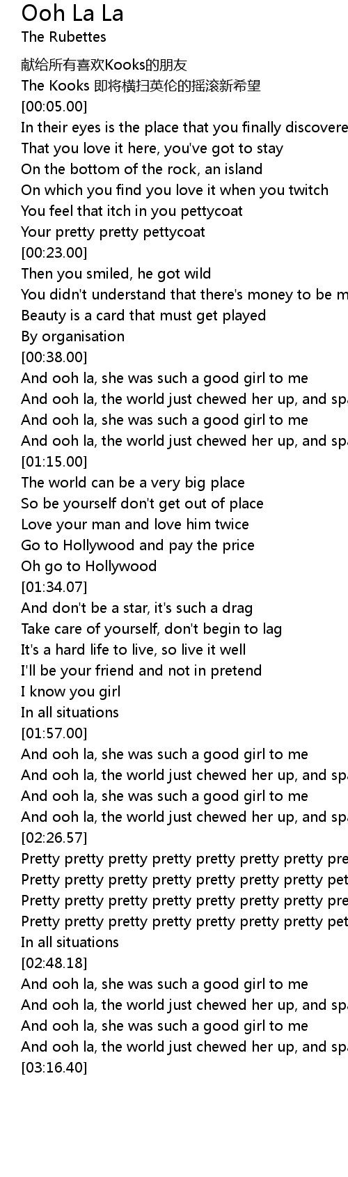 | [00:51.17] | And ooh la, she was such a good girl to me |