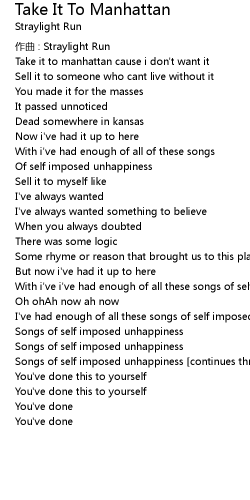 | Take it to manhattan cause i don't want it | |