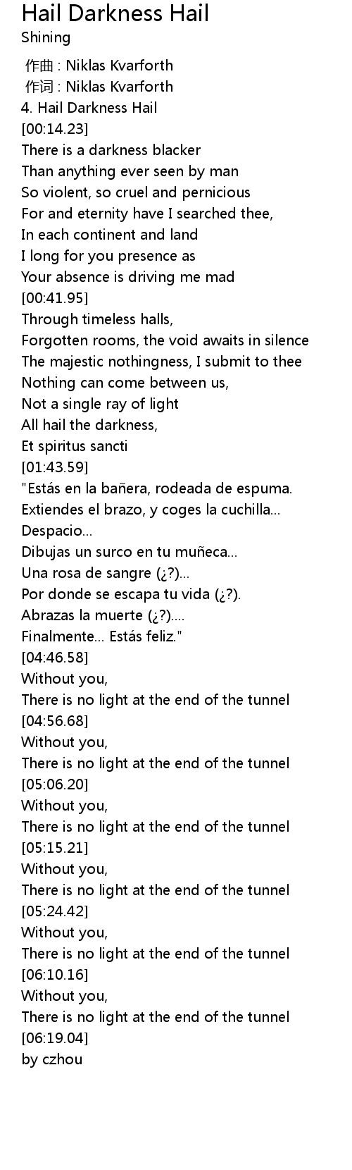 | [00:00.00] | 作词 : Niklas Kvarforth |