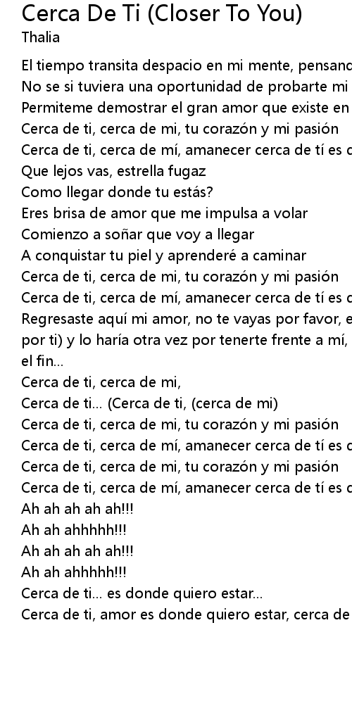 | Cerca de ti, amor es donde quiero estar, cerca de ti... |