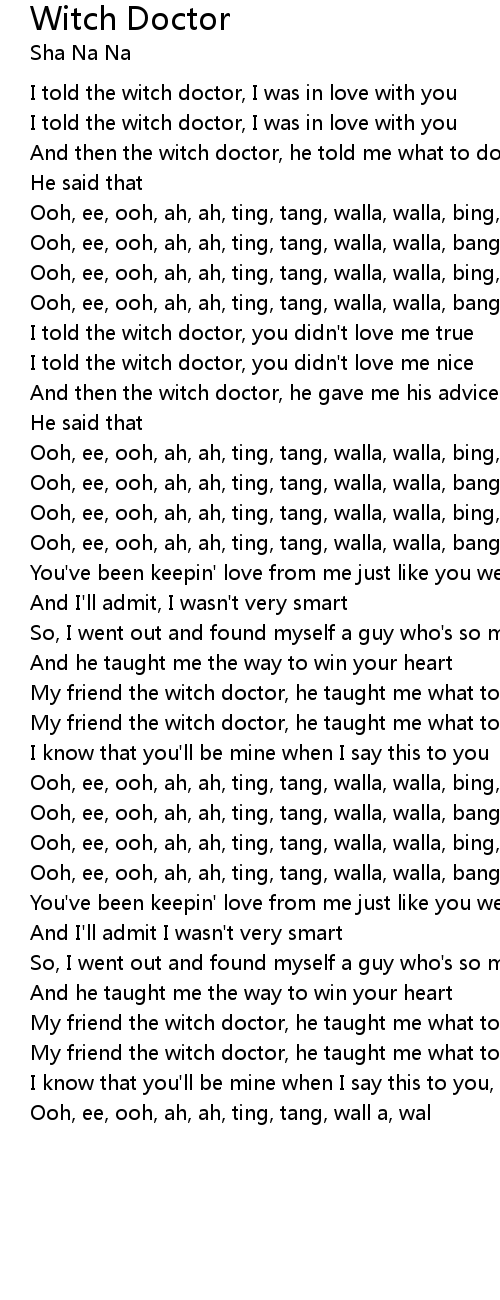 And then the witch doctor, he told me what to do |
