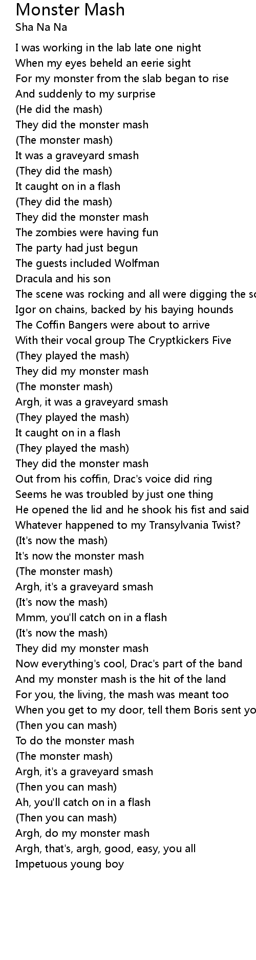 And my monster mash is the hit of the land |