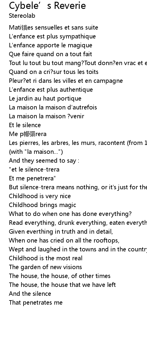 | But silencetrera means nothing, or it' s just for the rhyme. cybele' s reverie | |