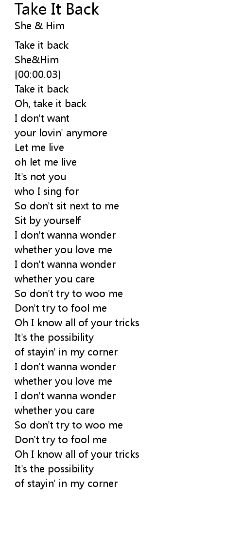 | [00:00.00] | Take it back |