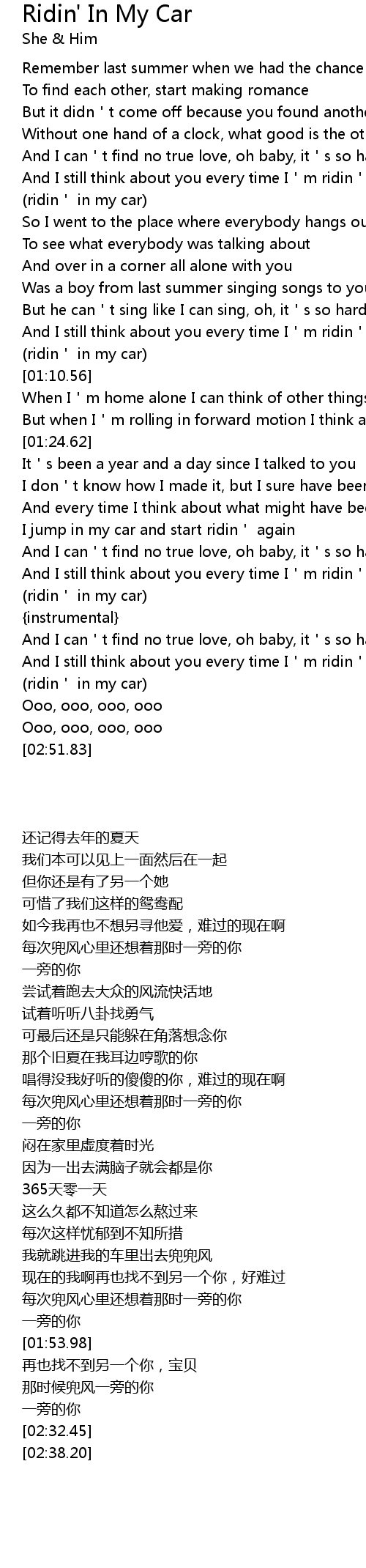 | [02:20.64] | (ridin' in my car) |