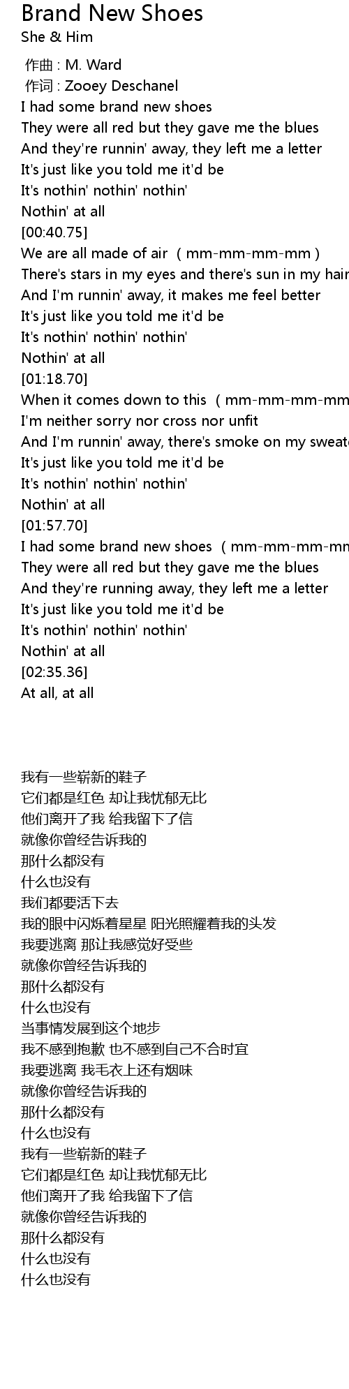 | [02:05.47] | I had some brand new shoes mmmmmmmm |