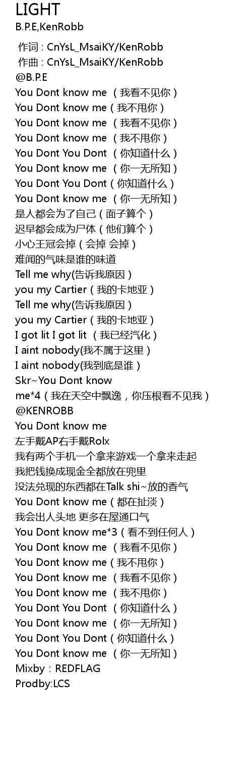 | [02:03.888] | You Dont know me(都在扯淡) |