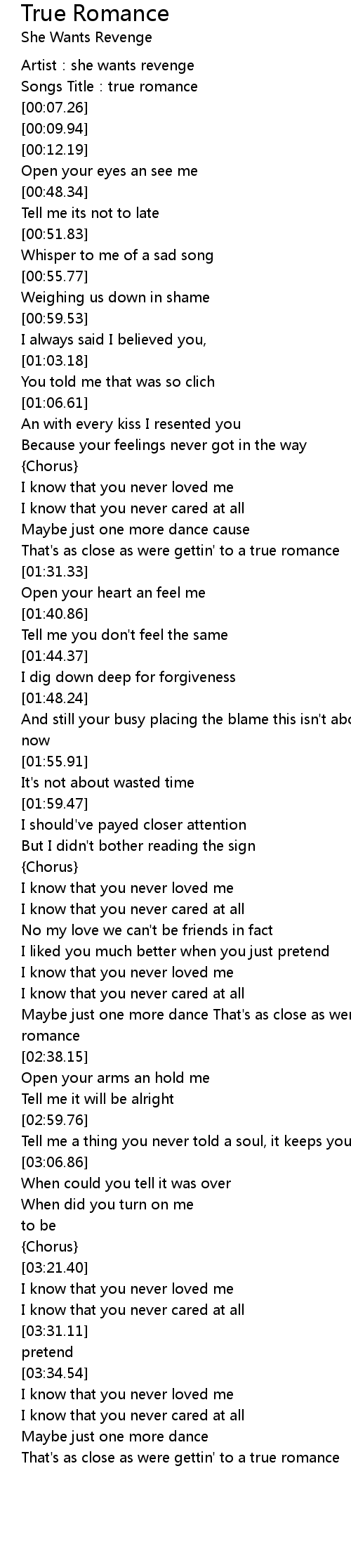 | [03:48.69] | That's as close as were gettin' to a true romance |