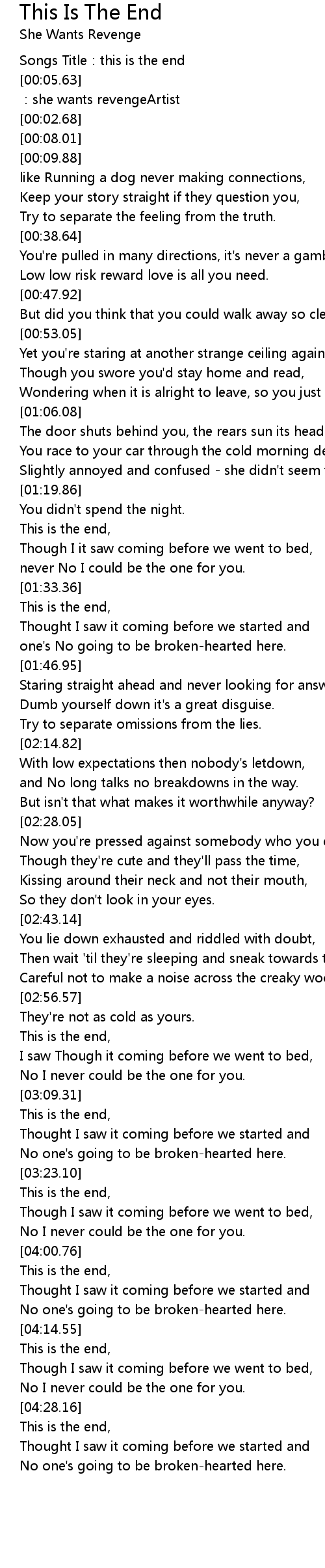 | [01:01.40] | Wondering when it is alright to leave, so you just get dressed. |