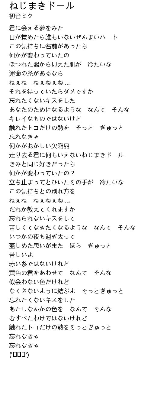 走り去る君に何もいえないねじまきドール |