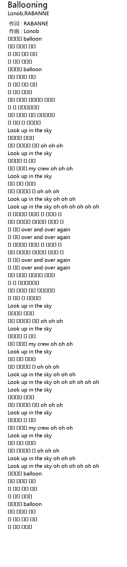 | [03:40.092] | 하늘위에 balloon |