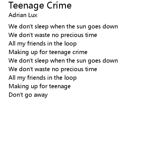 | Song | Teenage Crime |