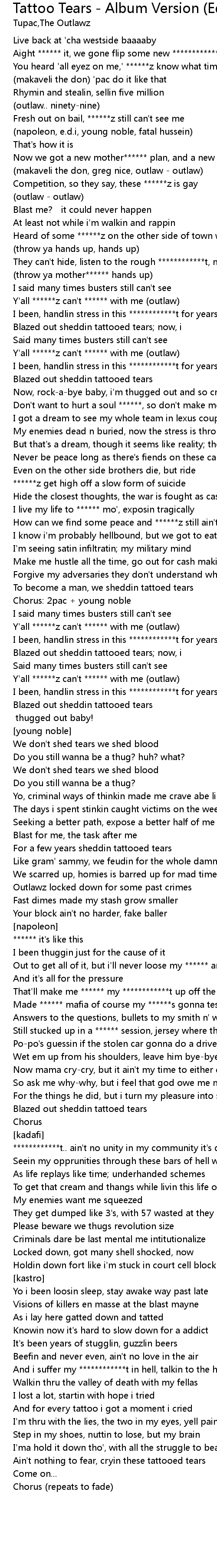 | Ain't nothing to fear, cryin these tattooed tears | |