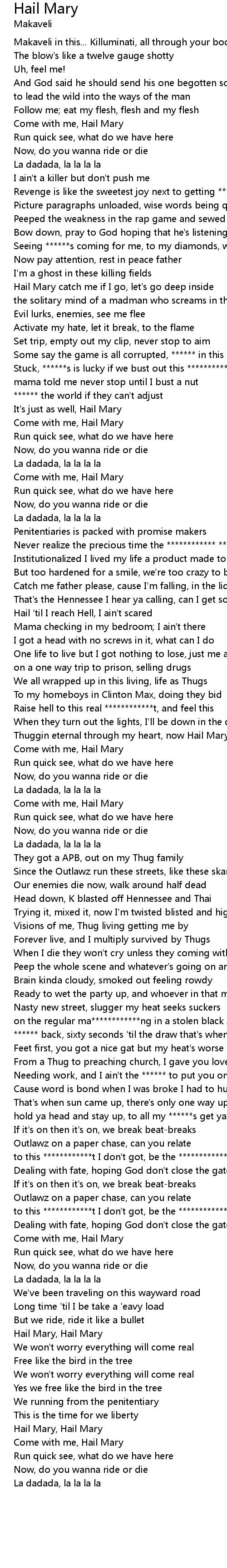 Thuggin eternal through my heart, now Hail Mary ****** |